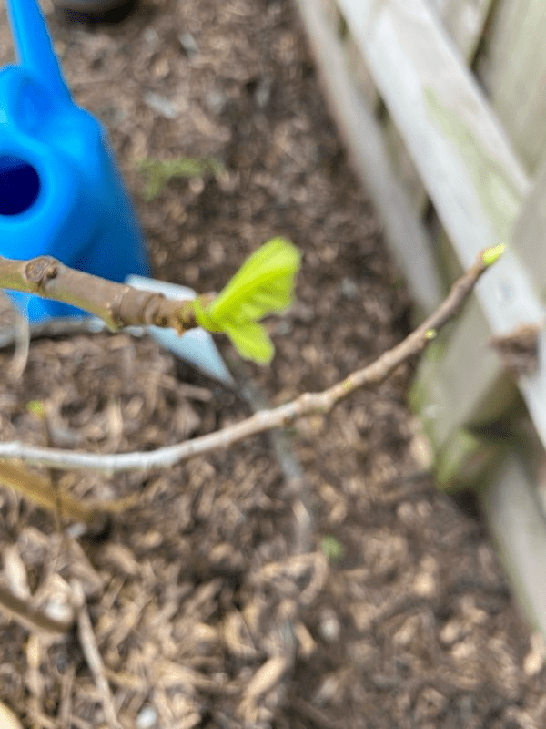 Additionally, I placed some old newspaper sheets underneath the mulch to retain water and slow down evaporation; hopefully, the weeds won’t thrive either. Today, I noticed new budding leaves.